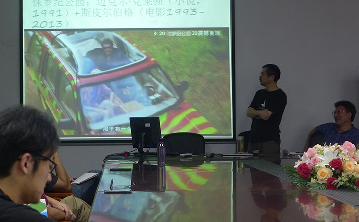 讲座开始,田松教授为在座的师生播放了《侏罗纪公园》和《阿凡达》的电影片段。然后提出两个问题:侏罗纪公园是否一定会崩溃?《阿凡达》仅仅是一个美好的神话还是具有现实的可能性?他认为,要理解科幻,需要把科幻理解为一种特殊的文体,田教授把这种文体命名为“思想实验”。