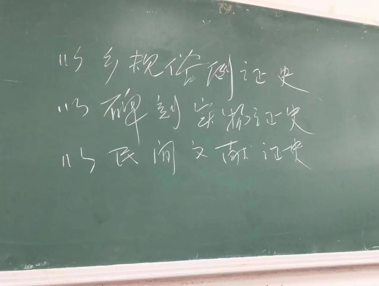 随后是“在现场解读文献”。传统的历史学是书斋里的学问,是在图书馆里面对老古董(文献、史书)。历史学的看家本领就是读文献,如果我们读不懂自己的历史,是一件可耻的事情。郑教授指出,在网络时代,找资料变得很轻松,如今要考验一个人的功力,并不在于这个人能不能找得到资料,而在于能不能对资料做深度的研究。因为文献是会“挖坑”的,当时的人们不会把完整的历史记下来,历史的记录是按照当时可以理解的语境书写的。在记录中,人们也会有自己的理解,并不客观。我们阅读这些文献需要回到情境中,“以乡规俗例证史,以碑刻实物证史,以民间文献证史。”对于史书,要读得懂,对于历史,要理解甚至认同。
