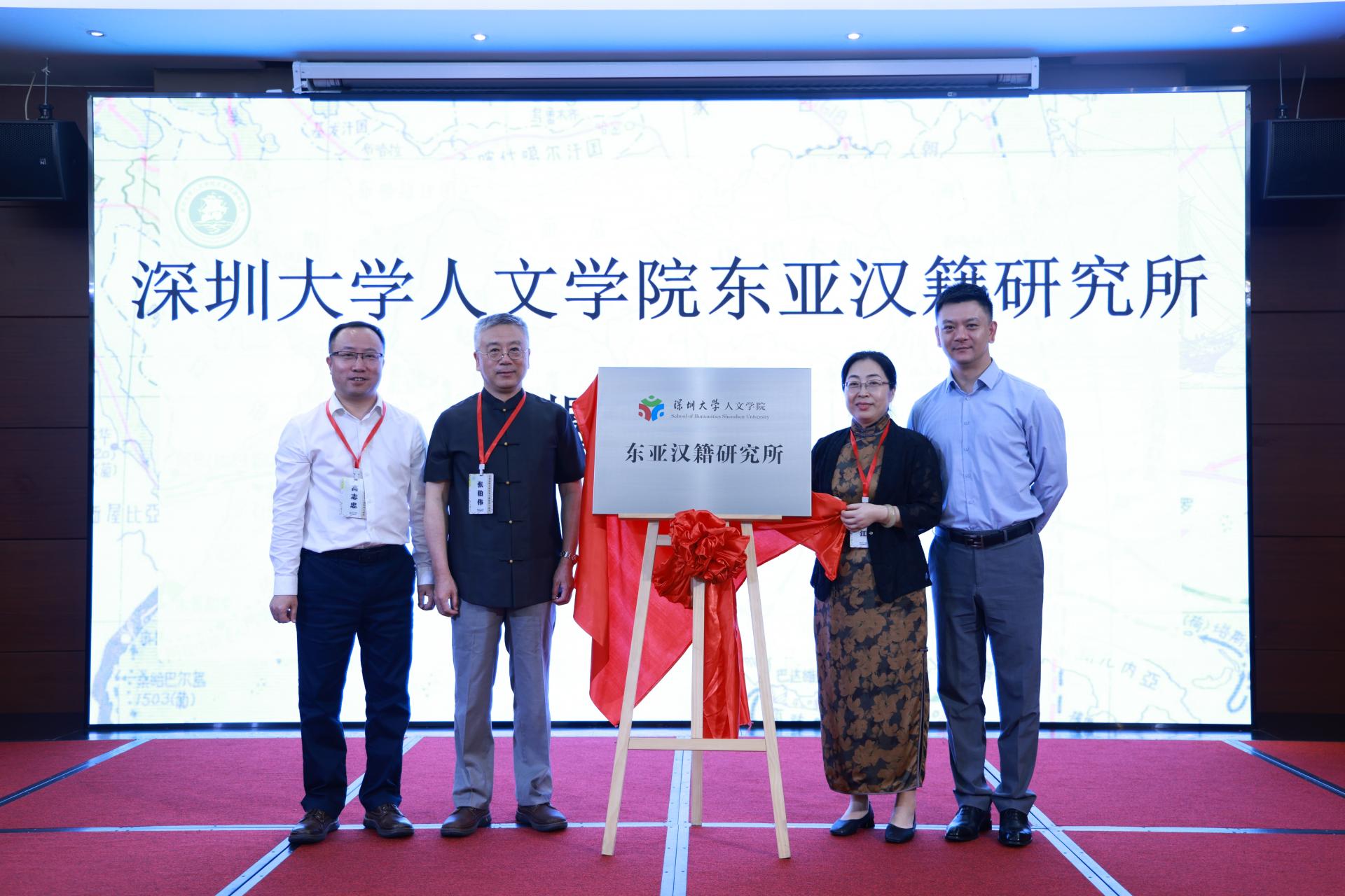 接着,战迪教授、张伯伟教授、高志忠教授、左江教授共同为深圳大学人文学院东亚汉籍研究所正式揭牌,战迪教授代表深圳大学为张伯伟教授颁发东亚汉籍研究所名誉所长聘书。