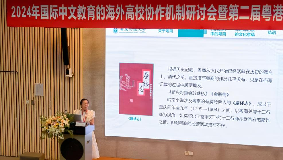 广东财经大学人文与传播学院、网络传播学院(合署)副院长张琼教授,做了题为《从〈镜花缘〉看海外粤商的文学形象》的演讲,她通过分析清代李汝珍的长篇小说《镜花缘》中林之洋这一粤商形象,认为林之洋生动地展现了历史上粤商的风采,从林之洋身上,可以看到岭南人接受中原主流文化的自觉。