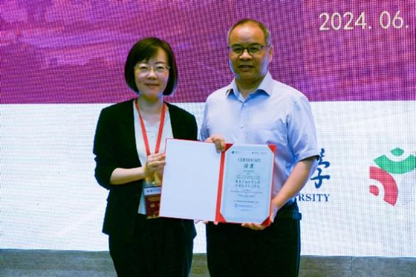 粤港澳高校汉语言教育联盟主任梁源向新成员单位:广东外语外贸大学中国语言文化学院和香港教育大学国学中心颁发证书,研讨会正式开始。