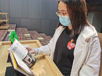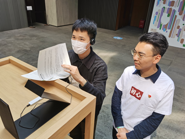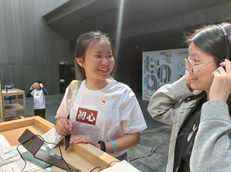 艺术展上充实布置着原创者们的灵感载体,使学生党员们目不暇接,对此次参观更加期待。用古老印刷工艺制作的卡片、描绘中式传统建筑的图画、中国民间传统艺术品窗花等,凝聚着原创者们的情感体验与心血,党员们深刻体悟理解艺术品的可贵之处,深切感触手工工艺者对于工艺传承的坚韧态度,无处不见的中式审美则更加拉近距离与传统文化的距离。对话艺术品,同志深刻体会到国家文化、文艺人才队伍的不断壮大,也从艺术家们身上认识到了创新的强大魅力与力量。“声音共创项目”板块,更是让党员们在聆听“机器之音”时倍感新奇惊喜,切身感受到社会科技奏响的强音,融合历久弥新的优秀传统文化,我国的艺术审美绽放出巨大的活力。