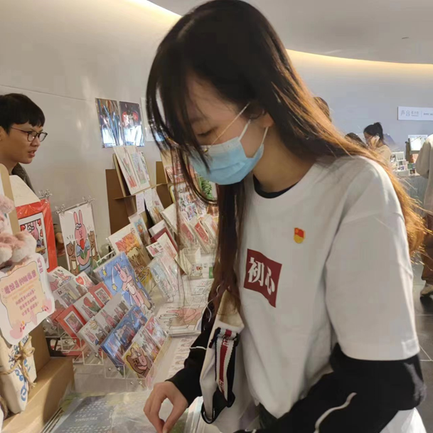 中午十一点,学生党员们在场馆导引者的指引下进入展览第一层进行参观。“不熟”雅昌艺术书展·深圳站聚集了百余位才华横溢、独具风格的优秀艺术创作者共创一个多元化的艺术世界。雅昌图书馆精心策划了两大主题单元,“作为艺术创作的摄影书”以及“深圳当代艺术机构自出版联展”,为我们呈现一个科技赋能艺术的新时代。