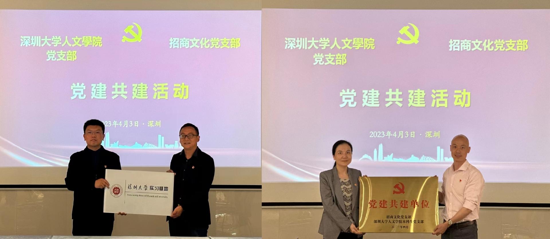 为深入学习贯彻党的二十大精神,迎接深圳大学40周年校庆,4月3日下午,人文学院前往深圳蛇口海上世界文化艺术中心开展党建共建活动暨“访企拓岗促就业专项行动”第八场。深圳招商文化产业有限公司总经理孙奇杰、副总经理李文俊、总经理助理张熙珈、运营总监宋程伟、文化艺术中心项目运营总监马睿、青少年活动中心副总监张千、青少年活动中心运营经理黄丽,人文学院党委书记弋灵、副院长李䶮、学工办主任郑鑫、党务秘书胡诗涵、教务秘书吴伊艺、辅导员刘芳珍出席活动。