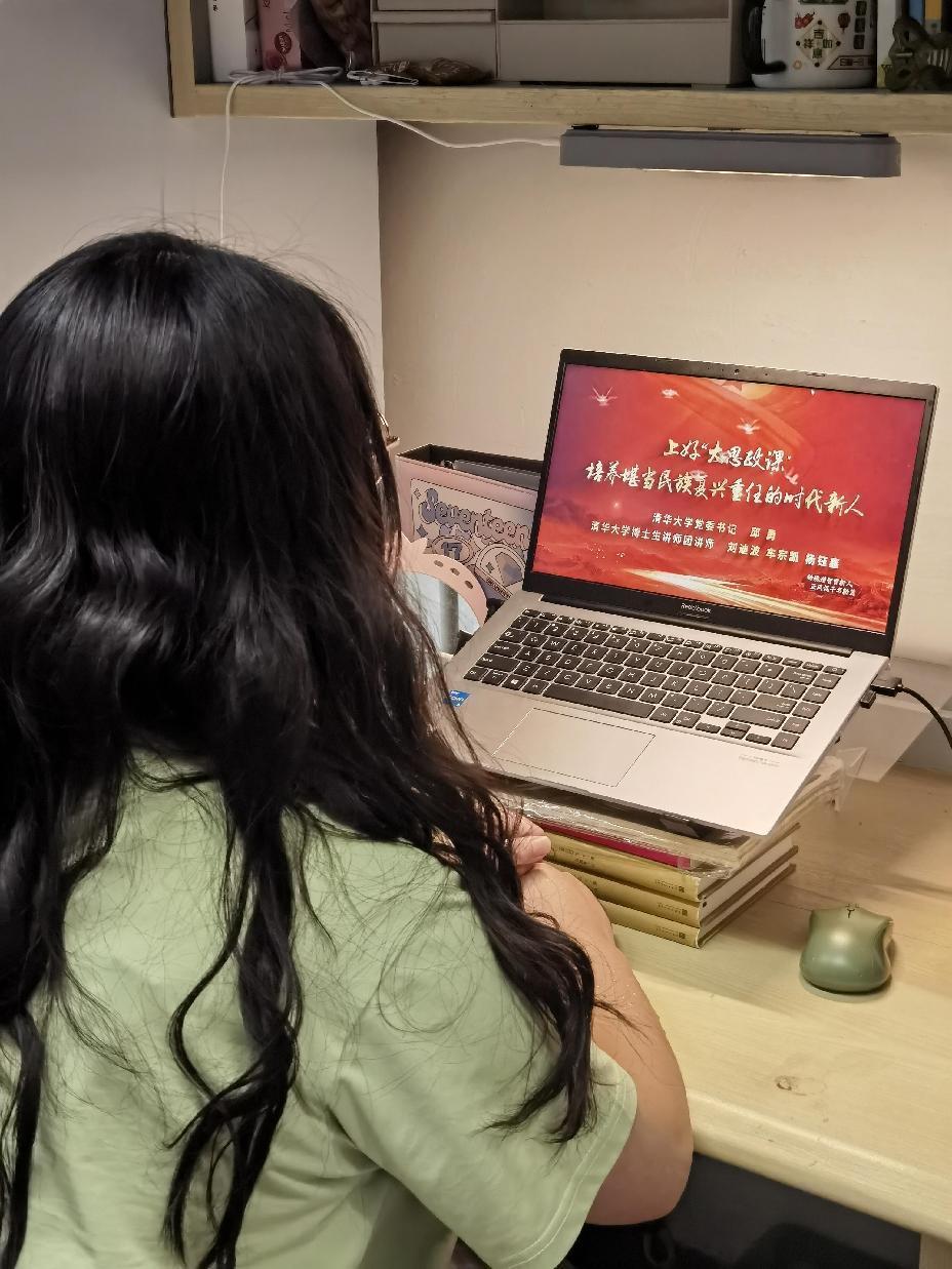其中有两个关键词我印象深刻,在几所大学的微党课中都有提及,那就是“青年”与“实践”。“青年要成为社会主义建设者和接班人,必须树立正确的世界观、人生观、价值观,把实现个人价值同党和国家前途命运紧紧联系在一起。”在清华大学的博士生讲师团上,我看到了他们用心把中国故事讲好的热情与信心,用真情实感传播好党的理论、方针、政策,肩负起时代之任。对于我们来说,筑牢思想之基,补足精神之钙,把稳思想之舵十分重要,那就要求我们要认真读原著,学原文,才能更好地悟原理,讲好中国故事。再者,实践十分重要,实践是理论之源,以学促行,能帮助我们更好地回答时代之问的答卷。