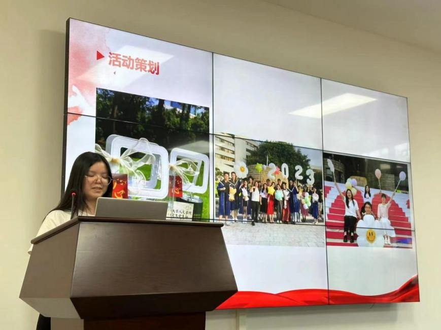 本科生党员黄伊敏同志分享了自己担任党务骨干的学生工作经历。作为活动的主要负责人,在策划本科生党支部主题党日“初心谈——我和党员面对面”、南山党建公园参观等活动的过程中,她注重细节,积极统筹策划,勇担责任,让更多的同学在活动参与中提升政治素养、锻炼实践技能。黄伊敏说道,在协助老师处理问题,在为同学们服务的过程中,她感受到自身使命感和责任感的增强,实现了自身的价值。同时,她也号召在场的同学们以青春回报学院,为学院贡献属于自己的一份力量。
