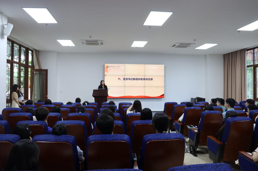 人文学院本科生党支部书记韩蔼婷老师作总结发言。她说道,通过同学们的故事分享和日常生活中与同学们的接触交流,她看到了人文学院本科生党员、团员身上蓬勃向上的青春力量,深深为同学们积极为学院师生办好事办实事的奉献精神感到骄傲。她鼓励同学们继续在脚踏实地中践行责任担当,继续发挥先锋模范作用,积极为学院师生办实事,解难题。