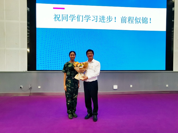 接着,李永华围绕“珍惜寸光阴,莫负三人行”展开讲述,向新同学们分享了他的大学时光、青年生活以及所爱之“歌”。他以“军训之歌”、“行动之歌”和“书写之歌”勉励同学们奋发向上,磨砺坚韧意志,夯实专业知识,培养运动习惯。