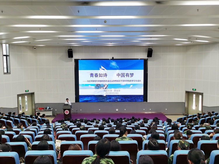 之后,李永华从“担当新使命,奋力向前进”出发,将深圳的发展历史娓娓道来,让在座的同学们充分领略深圳这座创新、协调、绿色、开放、共享之城的无限魅力,学习领悟深圳的十大观念,坚定了同学们与深圳共成长、同向前的决心。