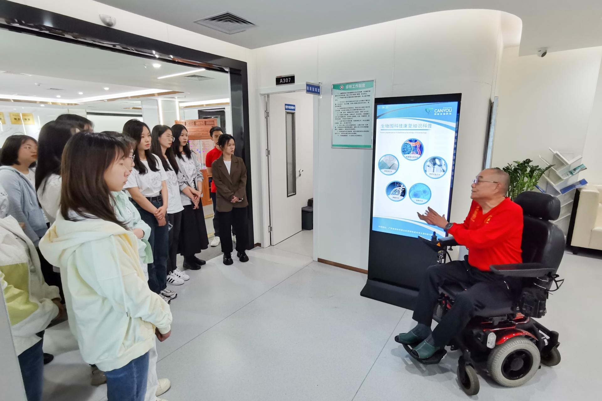 学院一行受到了残友社会组织党委书记、慈善基金会理事长、残友集团董事长郑卫宁的热情接待。他详细介绍了残友集团的创立、发展历程以及获得的各项荣誉。他说,残友集团从最初的“五个人一台电脑”发展到如今五千多名员工的公司规模,一直秉持 “无论病伤,天下无残”的企业理念,着力搭建慈善基金会、企业集团、社会组织‘三位一体’的组织架构。他向大家展示了残友集团近年来在生物科技领域上的创新成果和突破性成就。师生一行在参访中,切身感受到“人才强国”“科技兴国”的力量。
