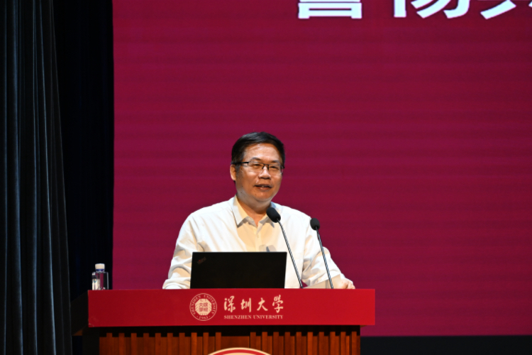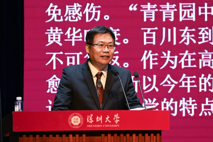 沈金浩院长以“善用大学条件 写好青春诗篇”为大会致辞。沈院长说,在深大建校四十周年之际,2023级新生们坚定选择了深大,可谓是不惑之人选择了不惑之校。他从大学有最佳的青春年龄、最好的起跳平台、最好的自塑机会、最大的调整余地、最多的同龄伙伴、最多的请教对象、最好的阅读条件、最好的运动条件这八个“最”,勉励同学们学好知识和本领、培养阳光心态和正面思维,见贤思齐、虚心求教,把个人追求与国家的前途、民族的命运结合起来,与人类的进步结合起来,让人生更有意义。沈院长衷心祝愿新生们在深大期间身体健康,心情愉快,发展全面,进步巨大。