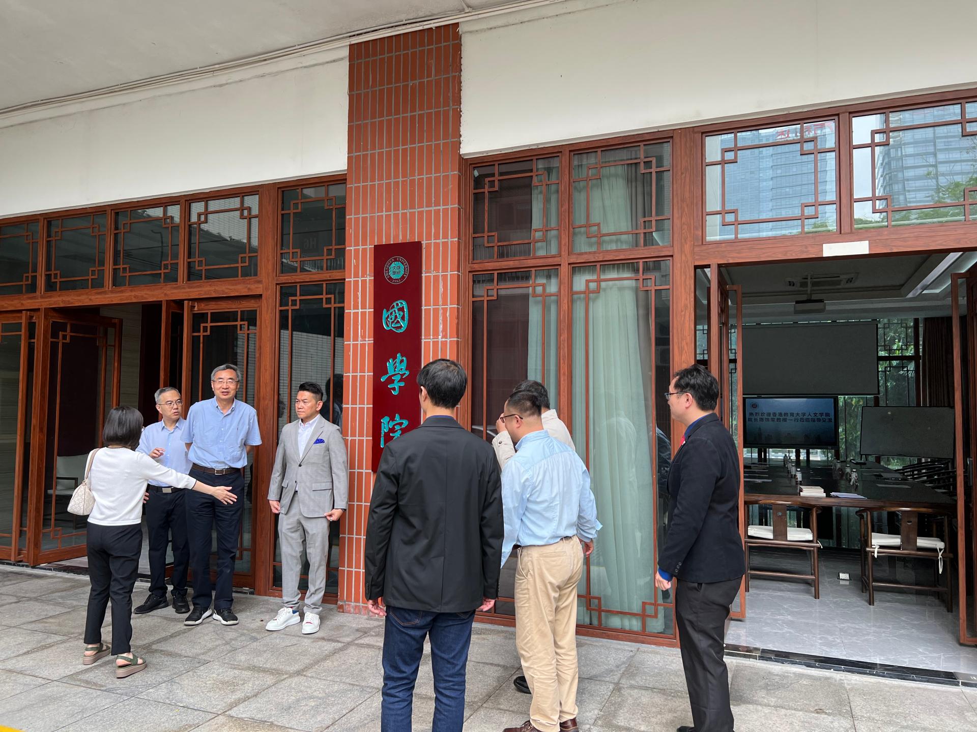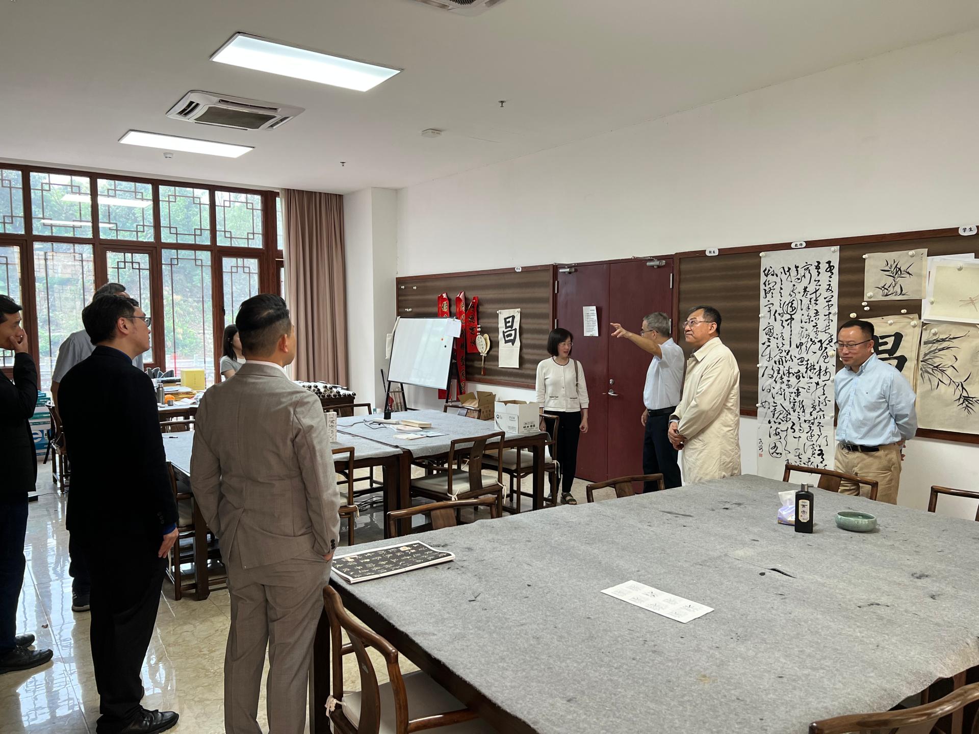 会议开始前,香港教育大学人文学院院长陈锦荣教授一行在深圳大学人文学院副院长梁立勇的带领下参观了国学院,梁院长详细介绍了国学院书法教室、古琴室、报告厅等。