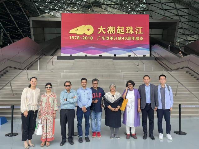 14日上午,加尔各答总领事馆“重走泰戈尔访华之路”代表团在市外办安排下,参观深圳当代艺术与城市规划馆和深圳博物馆,深圳大学人文学院研究生王昱栋担任陪同翻译和英文讲解。来宾们观看“大潮起珠江——广东改革开放40年展览”,盛赞深圳日新月异的城市面貌和广东省改革开放以来取得的伟大成就。在深圳博物馆,印度来宾参观了“文明丽迹——北魏平城与云冈石窟艺术”展览,他们不时驻足端详精美的雕像,赞叹中国对于古代文化遗迹的保存、维护工作,以及中国佛教造像艺术的精美绝伦。