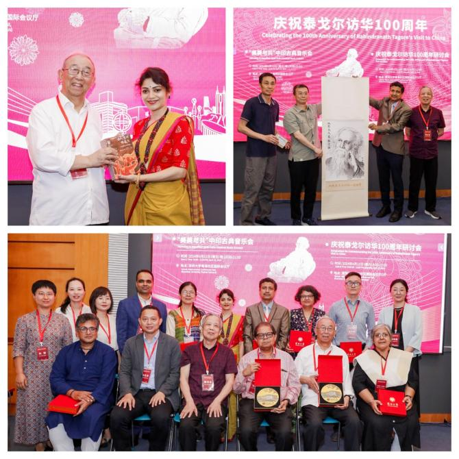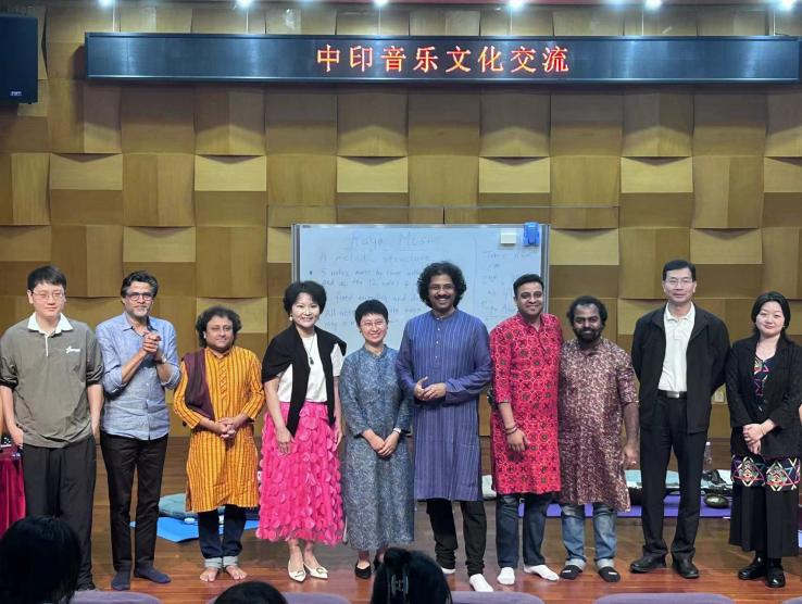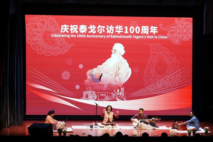印度研究中心为纪念泰戈尔与中国的百年友谊,融洽中印人民感情,增进中印人民交流与互信,中国人民对外友好协会、中国驻加尔各答总领事馆、深圳大学、上海政法学院、北京大学印度研究中心、兰州大学印度研究中心于2024年4月8—14日在深圳大学举办2024庆祝泰戈尔访华100周年暨深圳大学中印音乐人文交流周,印度音乐人、印度学子共聚鹏城,与深大学师生就音乐、文化、教育展开交流。