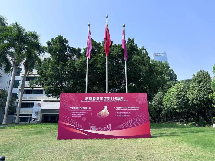泰戈尔于1924年首次踏上中国的土地,展开长达49天的行程,这是当年中国文化艺术界的一件盛事。在他回国后,经过谭云山等人不懈努力,于1937年印度国际大学中国学院建成。这所学院为印度培养了许多汉学专家,至今仍是印度的汉语教学中心。周恩来总理1956年访问国际大学时,深情地说:“泰戈尔不仅是对世界文学做出卓越贡献的天才诗人,还是憎恨黑暗,争取光明的伟大印度人民的杰出代表……中国人民对泰戈尔抱着深厚的感情,中国人民永远不能忘泰戈尔对他们的热爱。”