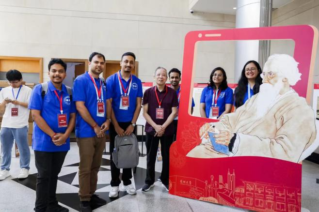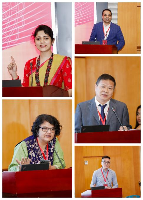 泰戈尔家族后裔、巴瓦尼普尔教育社会学院助理教授、著名婆罗多舞者和泰戈尔舞者舒日嘉·泰戈尔女士(Ms. Souraja Tagore)的发言题目是《竺震旦:精神自由的化身》(Zhu Zhendan: The Man Who Embodied Spiritual Freedom)。泰戈尔女士说,作为泰戈尔家族的一员,她努力在传承传统与拥抱创新之间寻求平衡。她强调在今天这个快速发展的世界中,重新审视泰戈尔十分必要;尽管泰戈尔常常被描绘为一位老者,但他的智慧从不过时,能够为当代人提供启示。泰戈尔相信东方是知识和价值的宝库,他赞赏中国文明一直受到精神信仰的滋养,而非仅凭物质力量发展壮大。泰戈尔女士朗读了泰戈尔的多首诗作,阐释了泰戈尔如何通过简单的文字表达深邃的思想,并再次强调了泰戈尔所珍视的友谊和相互理解。她呼吁年轻一代要保持开放的心态,与大自然和生命保持真挚的连接,在旅途中不断成长和进步。