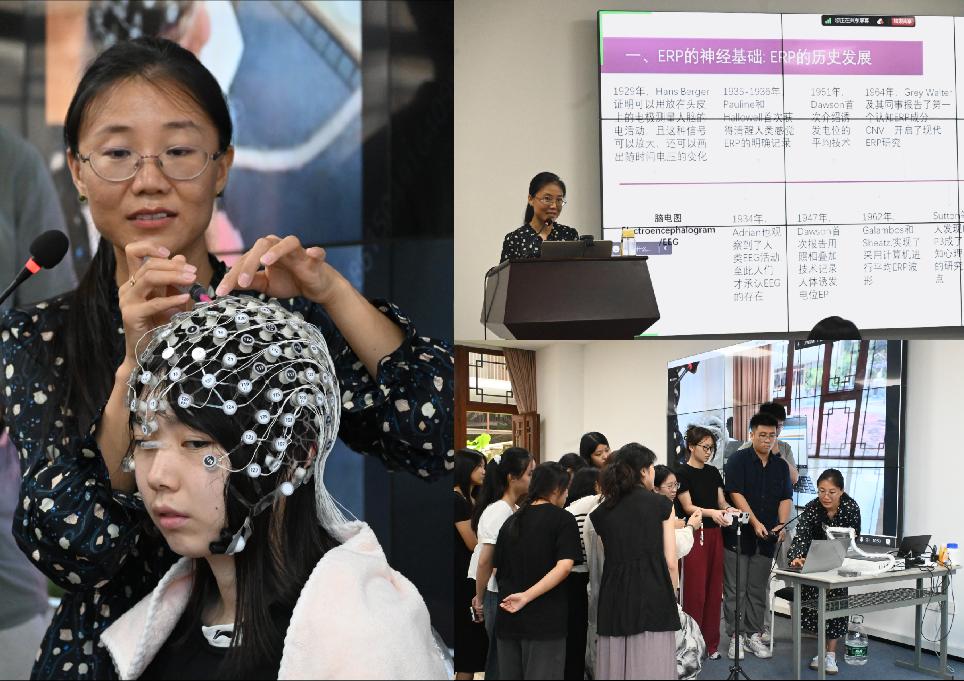 8月22日上午,齐百灵老师为学员们介绍了神经语言学的基本知识,并深入浅出地介绍了脑电仪的基本原理和应用技巧。通过具体的研究实例和现场脑电仪使用观摩,学员们对脑电仪在语言科学实验中的应用有了直观的了解。