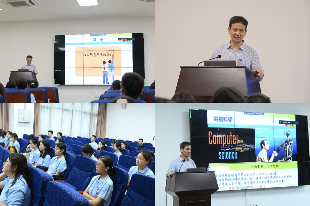 开幕仪式后,刘丹青教授作题为“语言学科及其左邻右舍”的语言学前沿讲座。刘老师深入浅出地介绍了语言的性质与功能,并对语言学科的主要分支进行了细致阐释,重点展示了语言在科学体系中的广泛存在和活跃作用,强调了语言作为人类特有的符号系统、交际工具、思维工具和文化载体的多重角色。刘老师还详细介绍了语言内部的子系统,并举例说明了语言学与人文社会科学、自然科学的紧密联系。最后,刘老师总结了语言学面对众多相关学科的任务,为学员们指明了语言学研究的方向和目标。
