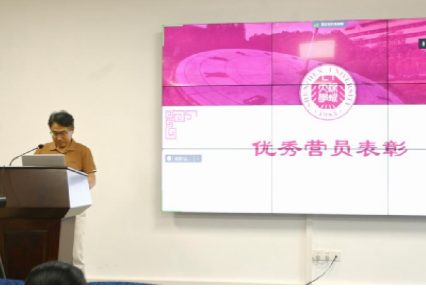 董理副教授宣读了获得结业证书的学员名单,中文系主任吴芳副教授为每一位线下学员颁发了结业证书。随后,詹勇副教授宣读了优秀营员的表彰决定,王鼎昌等11位同学荣获了优秀营员的称号,梁立勇副院长为他们颁发了荣誉证书。