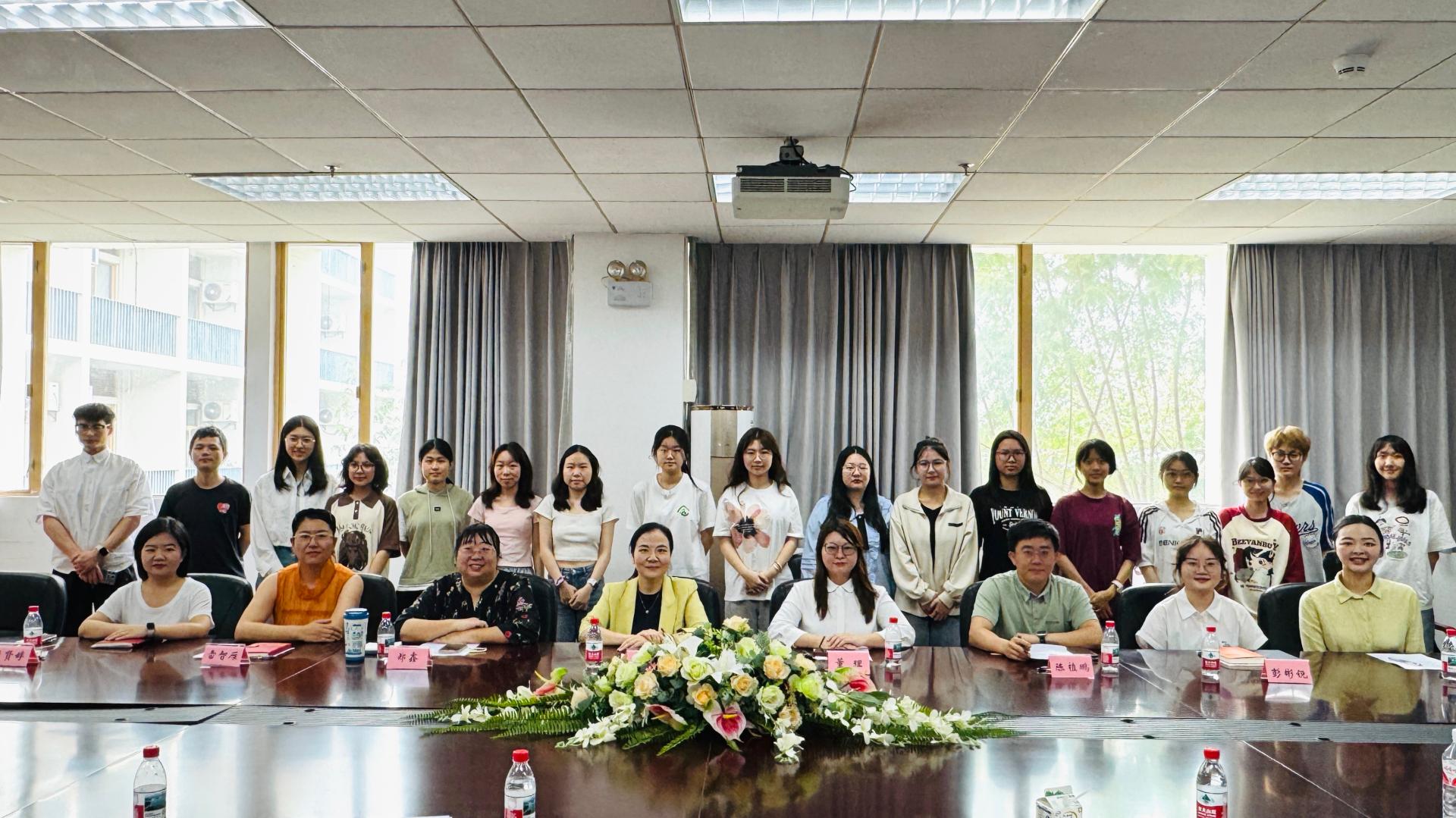为扎实推进深入贯彻中央八项规定精神学习教育,做好学院“十五五”规划编制相关调研,推动学院高质量发展,4月11日上午,人文学院在大会议室组织召开"凝聚师生力量,共谋学院高发展新篇章"专题师生座谈会。人文学院党委书记弋灵,院长助理、教工第一党支部书记董理,学院各业务口行政老师及20余名本硕学生党员、团支书代表、师生党建工作中心骨干参加此次座谈会。会议由本科生党支部书记、辅导员胡诗涵主持。