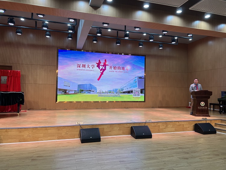 首先,人文学院副院长冯骏豪副教授分别从深大的速度与质量、学科专业、培养特色、就业前景、荔园生活、招生政策及报考指导等多个角度对深大作了全方位的介绍,充分展现了深大的办学优势和办学特色。宣讲结束后,冯骏豪副教授热情地为考生及家长答疑,针对大家关心的招生计划、录取排位、专业特色、未来就业及保研率等问题一一进行了详细解答,很多考生和家长都在现场加入了学校的招生咨询群并表示要报考深圳大学。随后,双方签订优秀生源基地协议并举行授牌仪式。