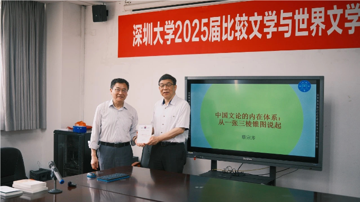 2025年5月19日,香港岭南大学中文系讲座教授蔡宗齐应深圳大学人文学院之邀,在深圳大学粤海校区汇文楼人文学院大会议室1100为深大师生们带来了题为“揭示中国文论的内在体系:从艾布拉姆斯的三线图到三棱锥图”的精彩讲座。该讲座为“深大讲坛”第210讲,“深大讲坛”是我校最高层次的综合性学术文化讲坛,定期邀请国内外各学科、各领域知名专家学者登坛演讲,通过“传播学术新知,领略名家风范,弘扬博雅精神,启迪人生智慧”,营造人文校园、学术校园、创新校园。