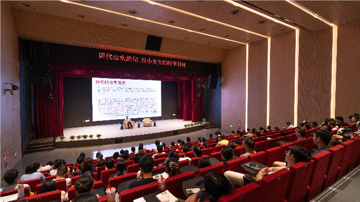 蔡宗齐教授到访人文学院的前一日,即5月18日应邀在深圳图书馆中国诗词大讲堂开展诗歌文化普及讲座:"唐代山水绝句:以小见大的时空书写",该讲座由深圳大学人文学院院长马自力教授主持,线上线下惠及观众达25万余人次。蔡教授从宏观层面解读诗歌,为市民从根本上了解中国诗歌魅力提供了新的视角,带来了新的认知,有效提升文化自信与民族自信,现场观众反应热烈。