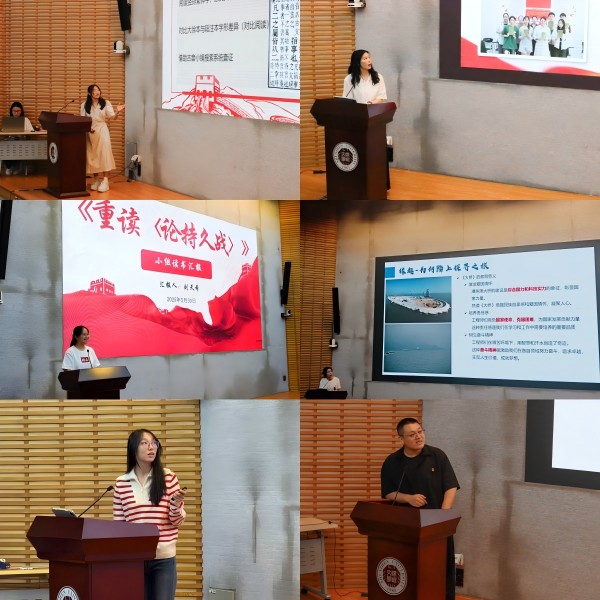 大会上,精选10个读书小组进行了成果汇报,展示精彩纷呈。《重读〈论持久战〉》小组通过文本细读与历史对照,深化了对经典战略思想的理解,阐释了“战略定力与战术活力相结合”的辩证思想;《语法讲义》小组别出心裁,提出眼动实验设想并创作《语法奇妙行》歌曲,展示语言学研究的焕新活力;《文明的冲突》从全球化视角切入,结合国际关系理论与区域发展案例,探讨文化多样性与文明对话的现实路径;《大桥》小组共读作品,模拟演绎桥梁搭建过程,并实地考察港珠澳大桥,诠释大国工程背后的工匠精神与家国情怀。