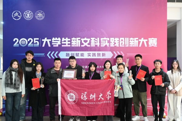 近日,2025年大学生新文科实践创新大赛全国总决赛在西安交通大学圆满落幕,深圳大学5支团队晋级国赛最终斩获4项金奖、1项银奖,金奖率高达80%,金奖总数位列全国高校并列第四,广东省第一。同时,深圳大学推荐至国赛的8个项目中,有5支代表队成功晋级决赛现场晋级率62.5%,入围数量位居全国并列第十。