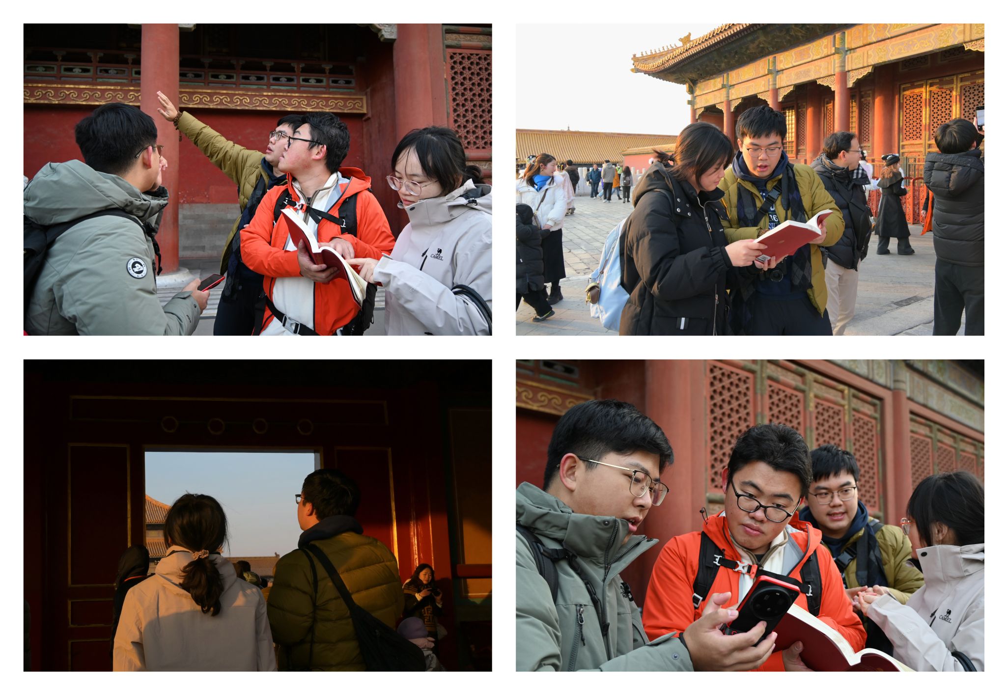 师生们边走边议。2021级中国语言文学博士滕海东结合专业所学,讲述了“2024年北京中轴线申遗成功的重大意义”“故宫文物南迁的壮举与精神传承”……师生们在红墙黄瓦间,深刻体会着中华优秀传统文化所蕴含的哲学智慧、美学精神与治理理念。