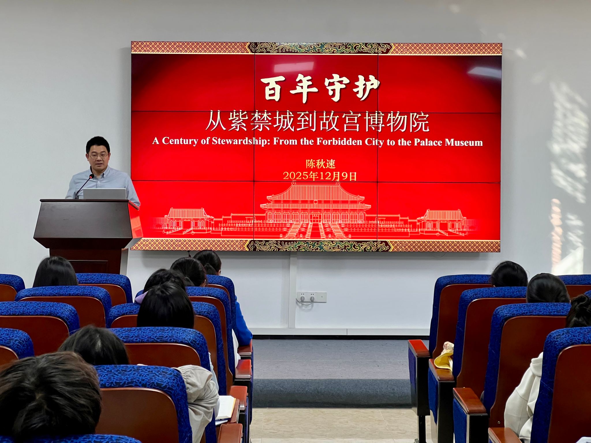 实践归来,研思未止。12月9日,为深化对博物馆叙事与文化遗产保护的理解,实践团成员在国学院报告厅参与了深大人文论坛第625期讲座。本次讲座特别邀请故宫博物院研究馆员、科研处处长陈秋速博士作为主讲嘉宾,他以《博物馆主题展览的策划与执行:基于“百年守护”展的思考》为题,将“百年守护” 大展作为案例,系统讲述了展览背后深厚的历史研究与价值阐释工作。