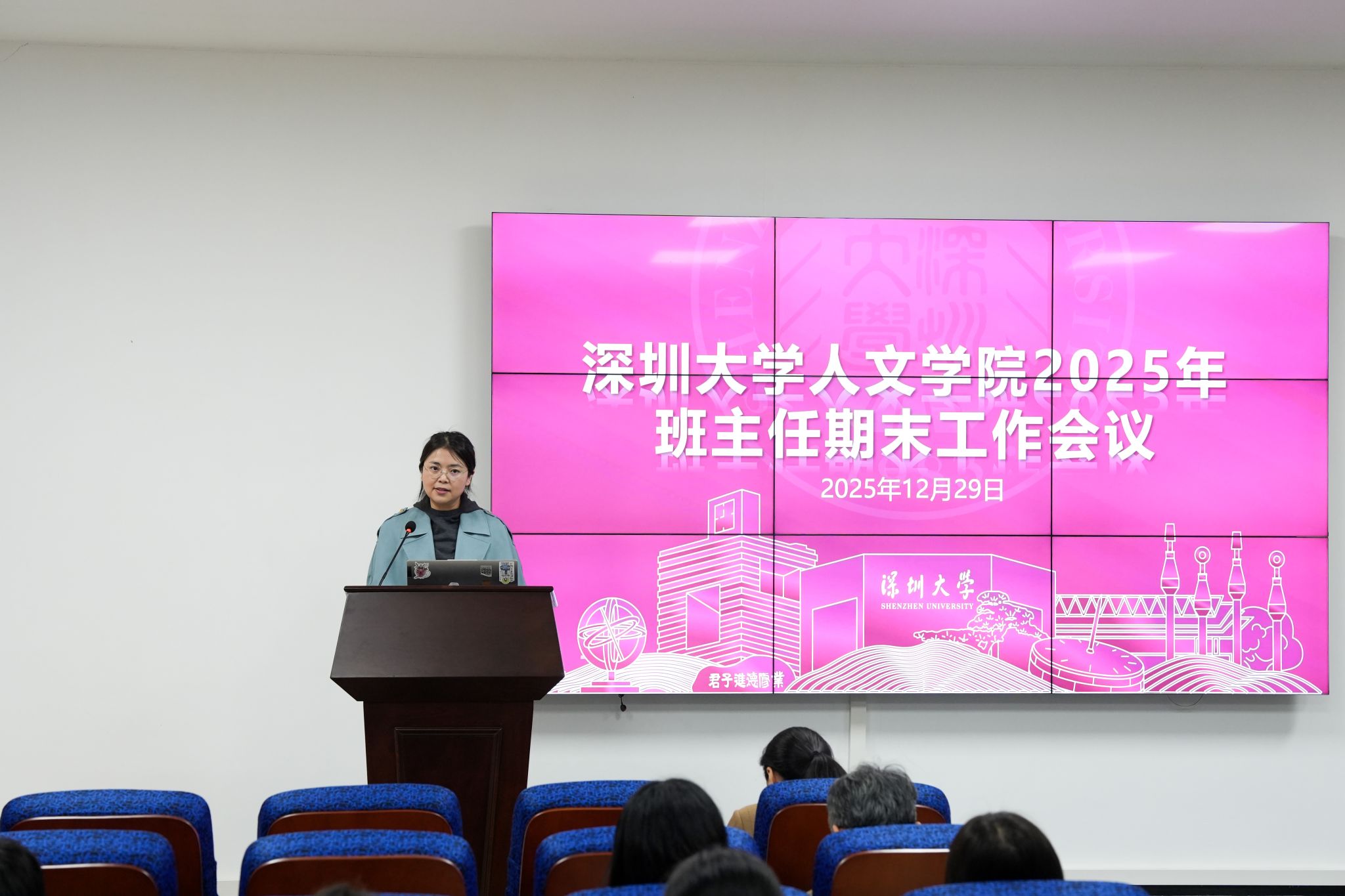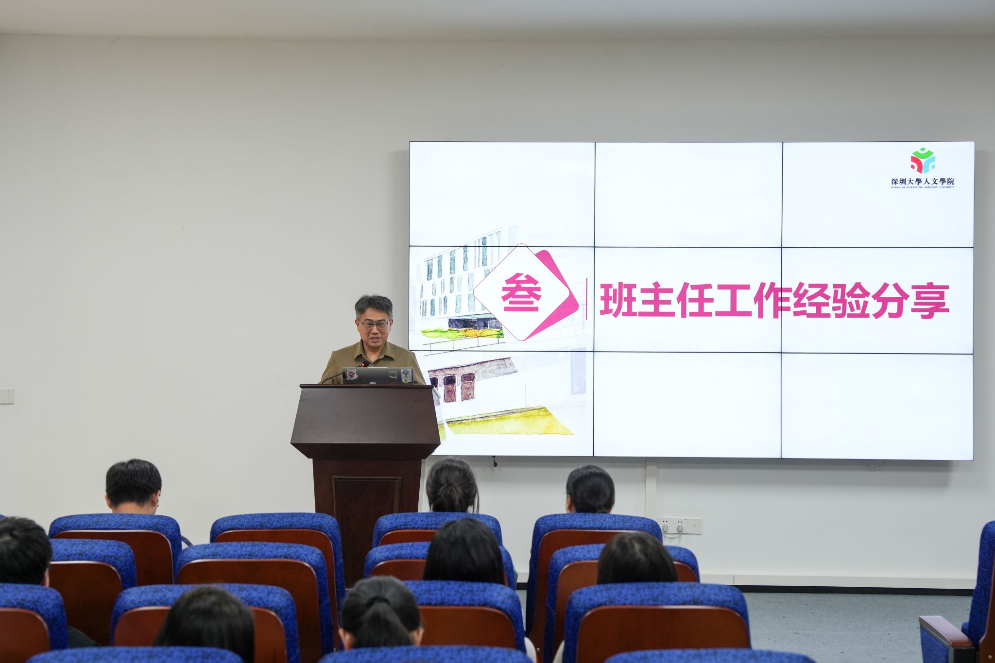 “教育是慢的艺术,需要静待花开的耐心;更是心的事业,需要以心换心的真诚。”她寄语全体班主任:要守住育人初心,在琐碎中见坚守,在平凡中显担当,让“立德树人” 不仅是理念,更是浸润在每一次沟通、每一份关怀中的具体实践;要永葆人文情怀,以包容之心尊重学生的个性差异,以专业之力点亮学生的成长方向,让人文精神在言传身教中代代相传;要笃行育人之约,与学院同心同向,把此次会议的共识转化为实实在在的行动,让每一位学生都能在深大人文的沃土上,成长为有温度、有格局、有担当的人。