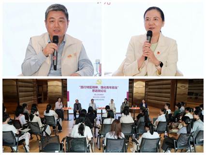 溯源城市发展根脉,何为特区精神?张佳平立足档案工作视角指出,南山区的改革开放历程为特区精神的诞生、发展与扎根提供了丰沃土壤,是其最生动的历史注脚。他系统梳理了南山“五个十年”的发展阶段:从传统边陲农业小镇,到当下迈向全球一流现代化创新城区,每一步都是无数奋斗者“埋头苦干、顽强拼搏”的精神体现。弋灵从高校育人视角出发,指出深大的精神基因正是在特区土壤中生长出来的,她结合自身奋斗经历,深刻阐释了深大“自立、自律、自强”精神与特区精神一脉相承的内在逻辑。弋灵还以“知行学堂”延安社会实践为例,梳理了从延安精神到特区精神的历史脉络,点明特区精神既是过往的历史荣光,更是当下每一位特区青年的奋斗底色。