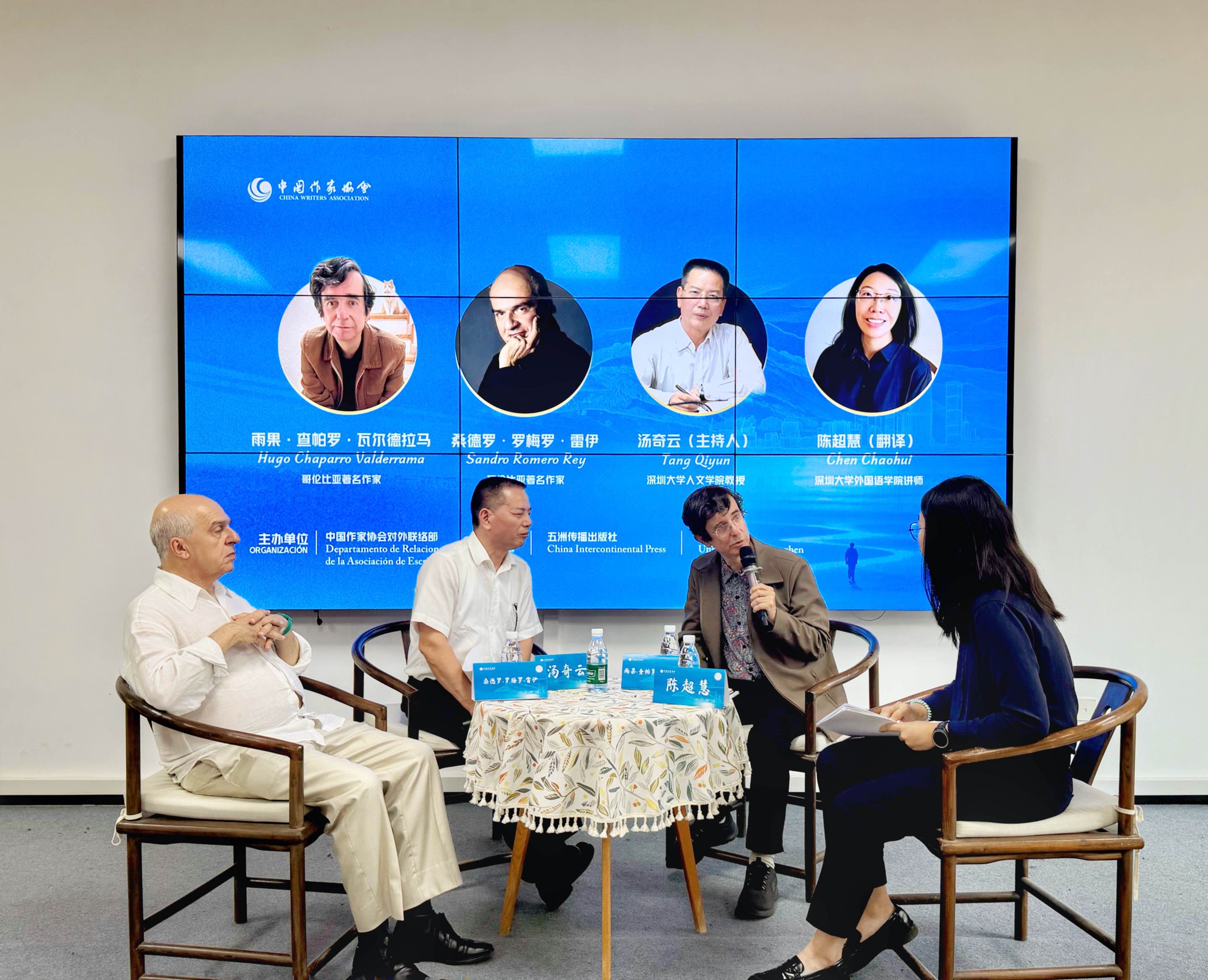 4月16日下午,由中国作家协会对外联络部、五洲传播出版社、深圳大学联合主办的“他乡与故土:中拉文学里的文化交融与身份寻根”文学对谈活动在深圳大学成功举办。深圳大学人文学院教授汤奇云与哥伦比亚著名作家雨果·查帕罗·瓦尔德拉马和桑德罗·罗梅罗·雷伊及现场师生展开深度对话,共同探讨移民文化语境下的身份建构与文学书写。