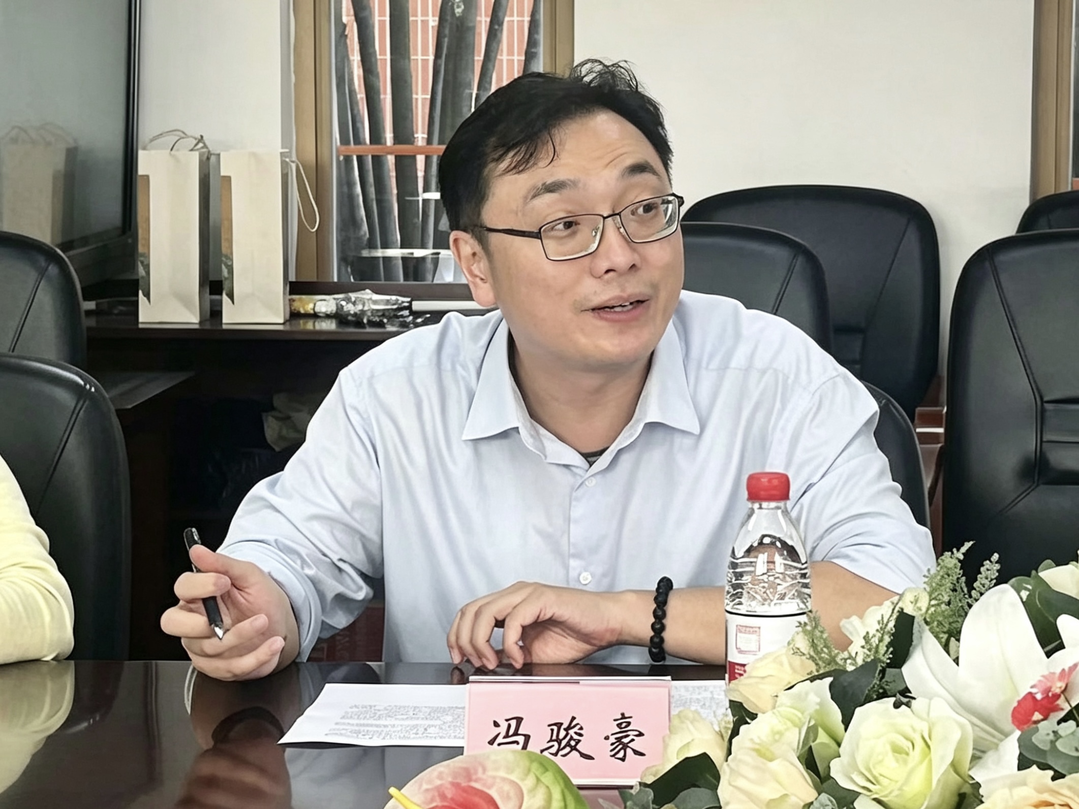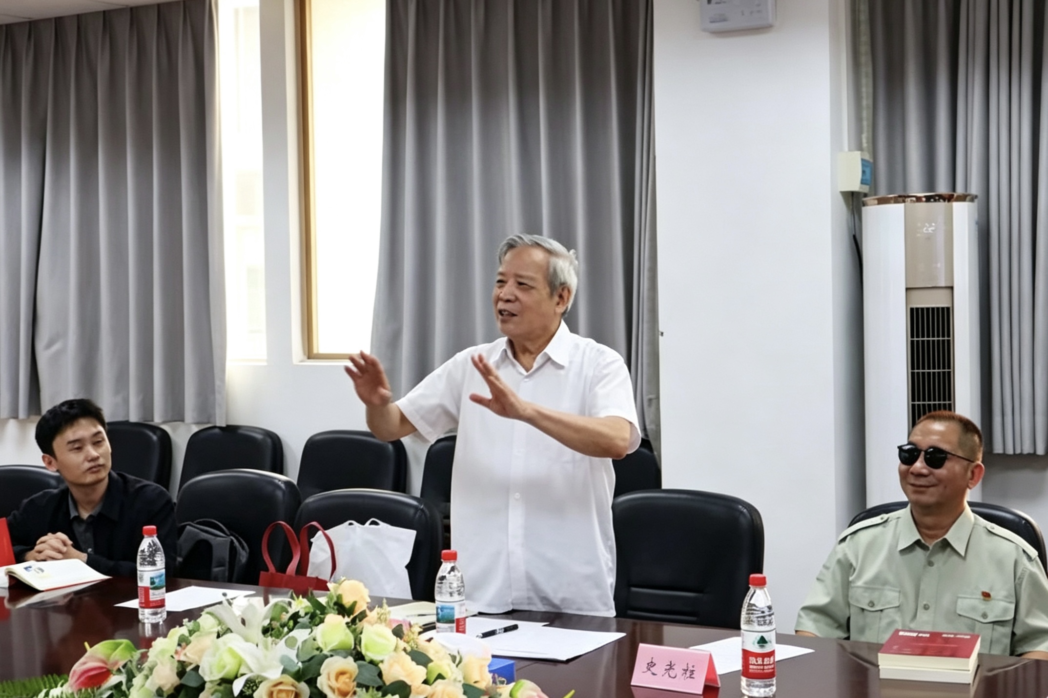 座谈伊始,冯骏豪代表学院向史光柱校友重回母校表示热烈欢迎。他回顾了史光柱从战场英雄到优秀作家的不凡历程:负伤失明仍坚守阵地,退役后考入深大中文系,成为我国首位获得学士学位的盲人毕业生;此后长期从事文学创作与社会公益,在关爱退役军人等方面作出重要贡献。冯骏豪指出,史光柱以实际行动诠释了坚定信念与顽强意志,其事迹是一部生动的“思政教材”,激励同学们从中汲取精神力量。