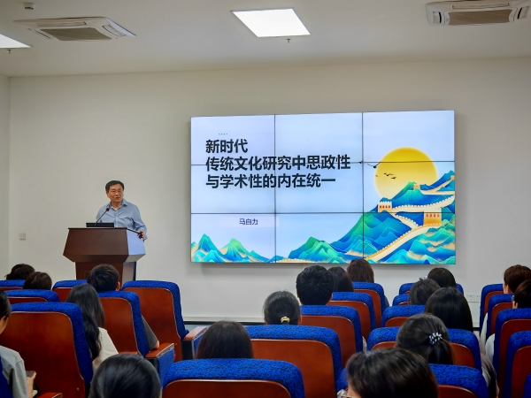 本次思政第一课以“新时代传统文化研究中思政性与学术性内在统一”为主题。马院长在授课中强调,中国传统文化是中国自主知识体系的基石,传统文化研究是传承民族文化的关键。新时代背景下传统文化研究具有跨学科融合、数字化研究、国际化交流的新趋势,要坚持守正创新,积极做中华优秀传统文化的信仰者、传播者和践行者。